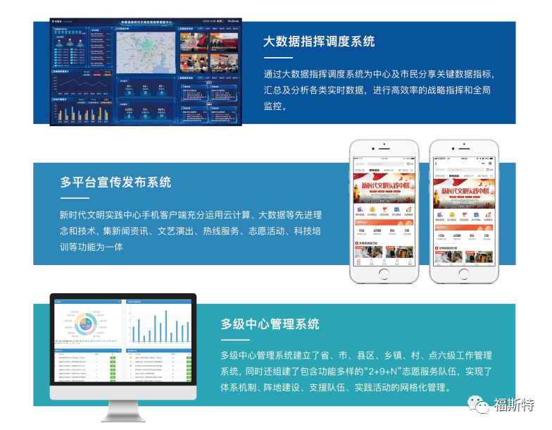 安徽福斯特信息技術(shù)有限公司持續(xù)助力新時代文明實踐中心建設(shè),充分利用大數(shù)據(jù)、云計算、移動互聯(lián)網(wǎng)等新一代信息技術(shù),打造新時代文明實踐中心云平臺,完善平臺動員、整合、引導(dǎo)、服務(wù)、創(chuàng)新和保障能力,實現(xiàn)新時代文明實踐中心的可持續(xù)運營。 福斯特新時代文明實踐中心云平臺集服務(wù)、管理、發(fā)布、展示于一體,推動平臺、終端、和渠道互聯(lián)互通,為基層黨的理論宣講、文化建設(shè)和為民服務(wù)提質(zhì)增效,為志愿者、受益者與管理者提供了一個安全、快捷、便利、智慧化的新時代文明實踐管理工具 借助“平臺力量”,使現(xiàn)有各級各類資源煥發(fā)活力、配置優(yōu)化、統(tǒng)籌使用、協(xié)同運行,把宣傳教育與引導(dǎo)實踐相結(jié)合,搭建與群眾雙向互動的溝通橋梁,增強群眾對文明實踐的理解支持,實現(xiàn)了文明志愿服務(wù)動態(tài)交互,充分發(fā)揮文明實踐資源陣地的最大效能。 平臺建設(shè)有助于擴大服務(wù)范圍,強化服務(wù)手段,提高服務(wù)效率,實現(xiàn)線上+線下良性互助推動,同步發(fā)展、深度融合,對促進資源綜合利用,提高服務(wù)創(chuàng)新能力形成“一呼百應(yīng)”“應(yīng)者云集”良好態(tài)勢形成新時代文明實踐中心建設(shè)的強大力量。